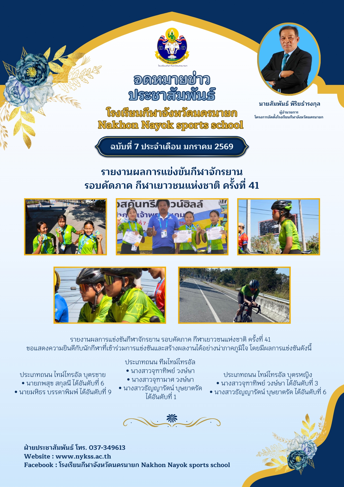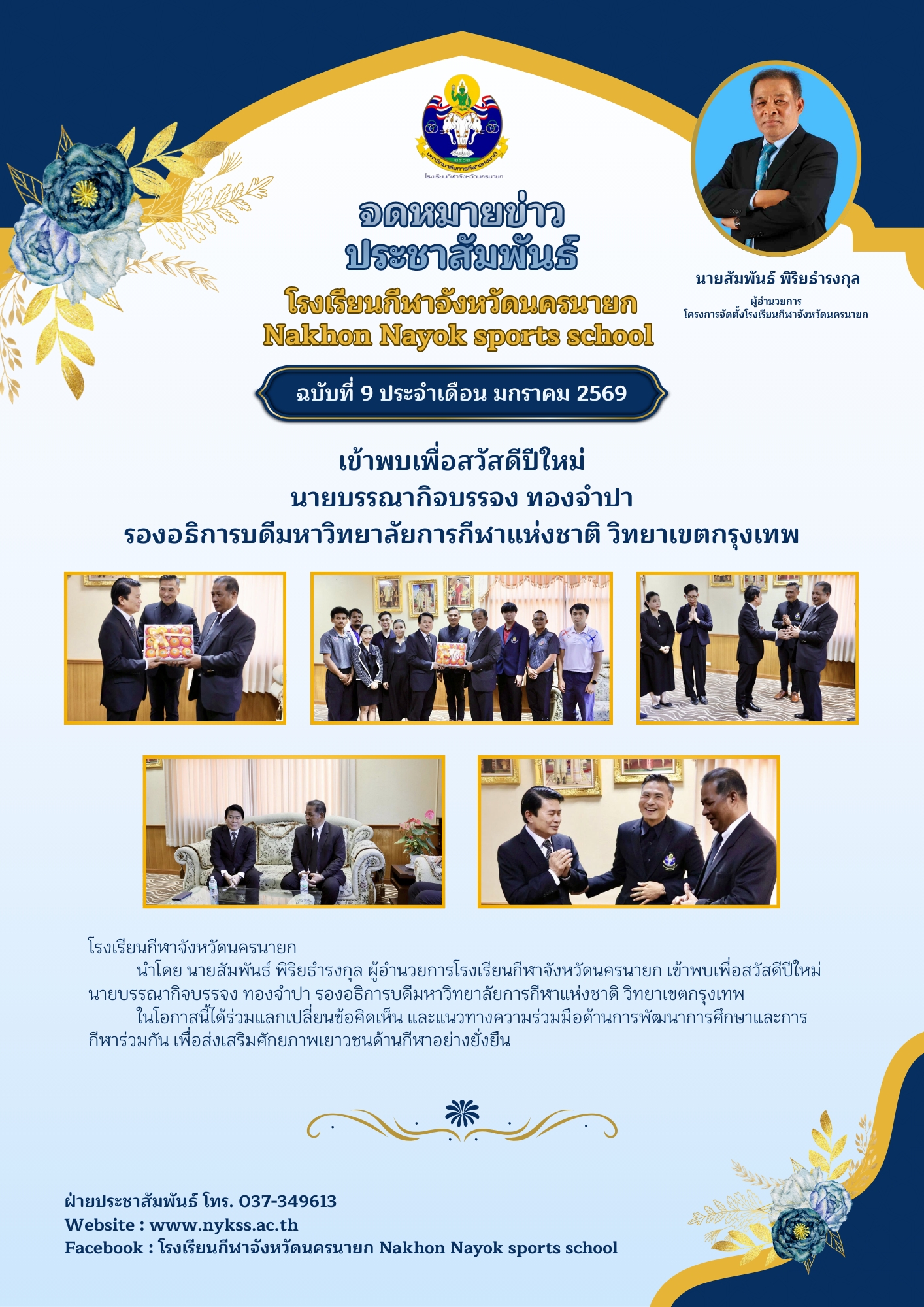 การประกาศรายชื่อผู้มีสิทธิ์เข้าเรียน :: รายชื่อผู้สิทธิ์สอบวัดความรู้พื้นฐานทางการเรียน และตรวจสุขภาพ ปีการศึกษา ๒๕๖๙ :: ประกาศรายชื่อผู้มีสิทธิ์สอบทักษะกีฬา ปีการศึกษา 2569 นักเรียนที่มีรายชื่อรายงานตัวเพื่อเข้าสอบทักษะกีฬาในวัน เสาร์ ที่ 14 กุมภาพันธ์ 2569 :: นายสัมพันธ์ พิริยธำรงกุล ผู้อำนวยการโรงเรียนกีฬาจังหวัดนครนายก เข้าพบเพื่อสวัสดีปีใหม่ นายบรรณากิจบรรจง ทองจำปา :: รายงานผลการแข่งขันกีฬาเยาวชนแห่งชาติ กีฬาแฮนด์บอล รอบแรก :: รายงานผลการแข่งขันจักรยาน :: ประชุมหัวหน้าส่วนราชการ หัวหน้าหน่วยงานรัฐวิสาหกิจ ผู้บริหารองค์กรปกครองส่วนท้องถิ่น ประจำเดือนมกราคม 2569 :: ในโอกาสวันขึ้นปีใหม่ :: ประชุมประจำเดือนกำนัน ผู้ใหญบ้าน อำเภอองครักษ์ ครั้งที่ 1/2569 :: สวัสดีปีใหม่ 2569 และขอพรเนื่องในโอกาสขึ้นปีใหม่ ::